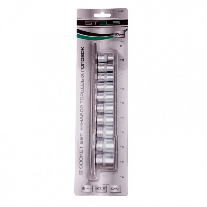 Набор торцевых головок, 3/8, шестигранные, CrV, 10 шт, 8-19 мм Stels