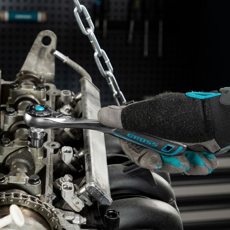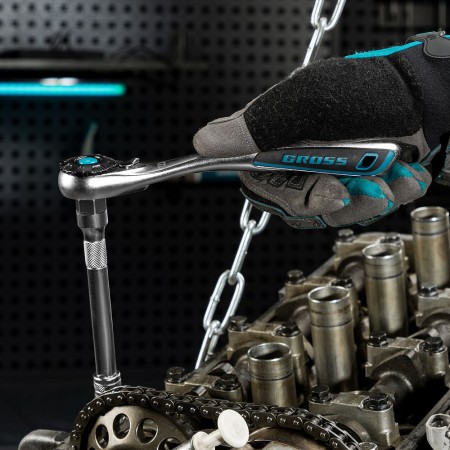 Набор торцевых головок, трещотка 120 зубьев, 3/8", CrV, 12 предметов Gross