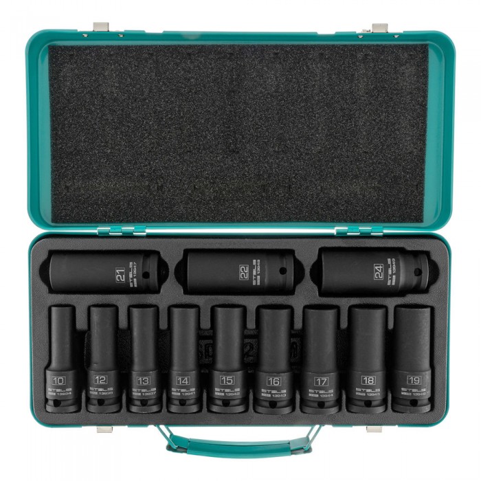 Набор ударных глубоких шестигранных торцевых головок, 1/2", 10-24 мм, в кейсе 12 шт. Stels