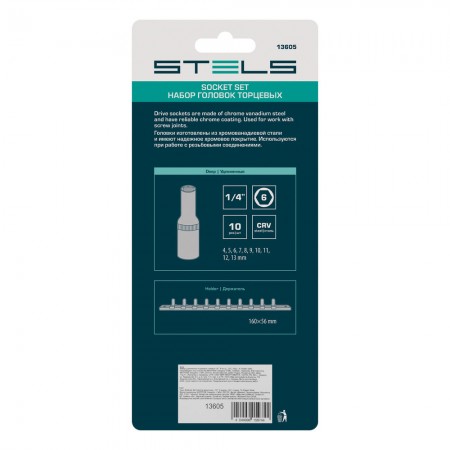 Набор удлиненных торцевых головок 1/4, шестигранные, CrV, 10 шт, 4-13 мм Stels