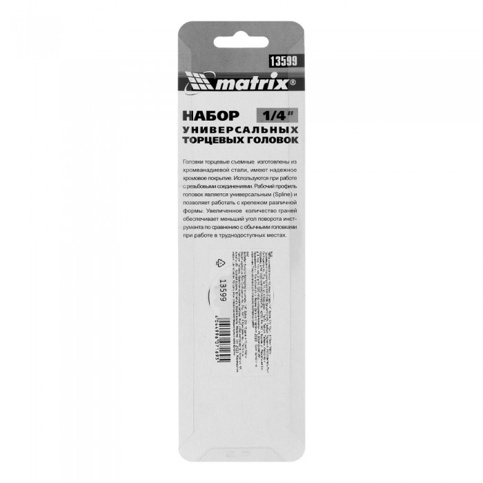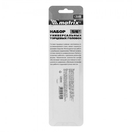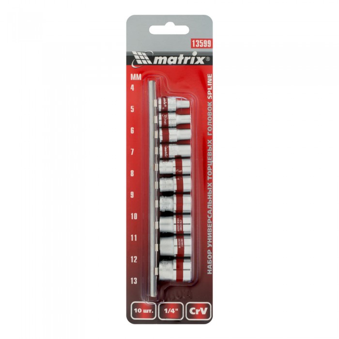 Набор универсальных торцевых головок 1/4", Spline, CrV, 4-13мм, 10 штук Matrix