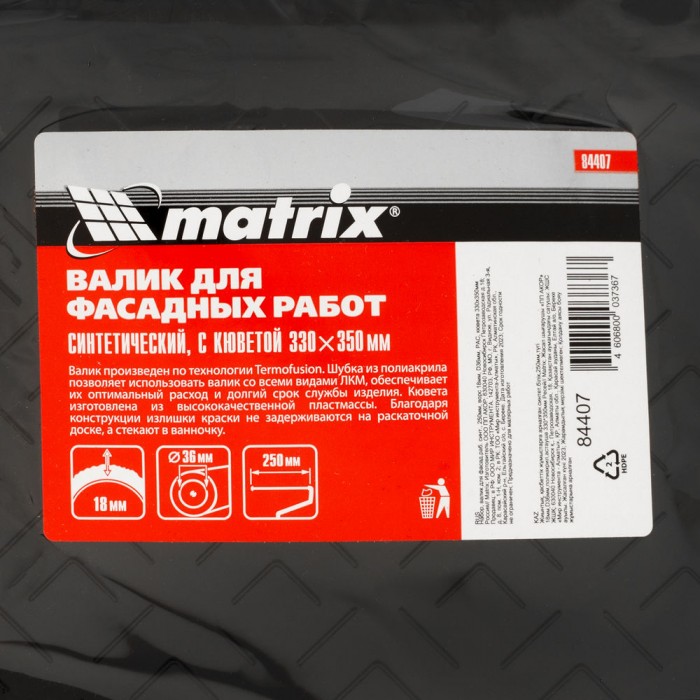 Набор, валик для фасадных работ синтетический, 250 мм, ворс 18 мм, D 36 мм, РАС, кювета 330 х 350 мм Matrix (84407)