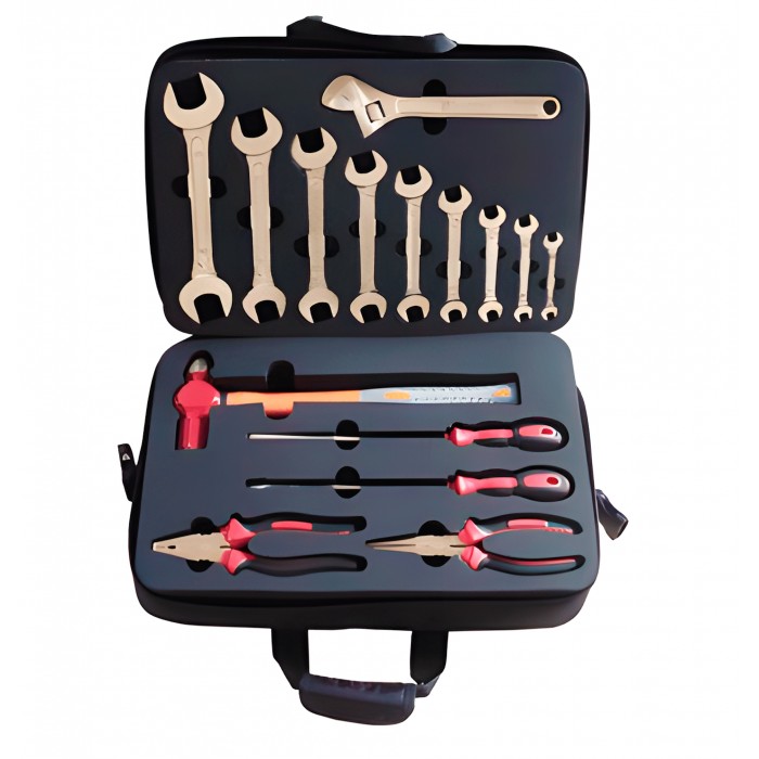 Искробезопасные наборы инструмента HORTZ, предназначены для работы во взрывоопасных средах. Наборы инструмента применяют в металлургической, газовой, нефтяной, горнодобывающей, угольной и других отраслях промышленности. Изготавливается в двух вариантах сплавов: алюминиевая бронза и бериллиевая бронза (AL-Cu & Be-Cu). Высокая прочность, высокое качество. Сертифицирован в соответствии со стандартами взрывобезопасности ТР ТС 012/2011.