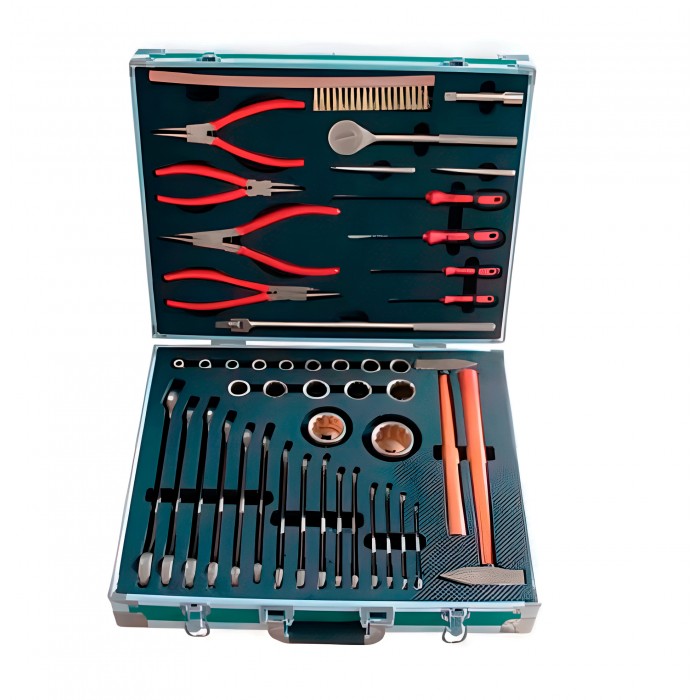 135 Ключ комбинированный - 8мм, 10мм, 11мм, 12мм, 13мм, 14мм, 15мм, 17мм, 19мм, 21мм, 22мм, 24мм, 26мм, 27мм, 30мм 104 Головка торцевая 1/2"- 8мм, 11мм, 12мм, 13мм, 14мм, 15мм, 17мм, 19мм, 21мм, 22мм, 24мм, 26мм, 27мм, 30мм, 36мм, 41мм 261 Отвертка крестовая - 1*75 мм, 2*125 мм 260 Отвертка шлицевая - 4*100 мм, 6*100 мм 200 гр, 186A Молоток - 300 гр 223C Бородок - 3*11*120 мм, 4*11*120 мм 120 Трещотка с переключателем 1/2 - *245 мм 122 Удлинитель 1/2* - 100 мм 118 Ручка шарнирная 1/2 - *400 мм 285A Щетка - 4*19мм 256 Клещи для внут. колец - 8", 10" 257 Клещи для внеш. колец - 8", 10"