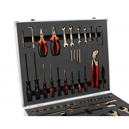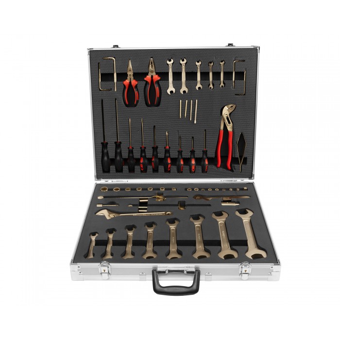 Искробезопасные наборы инструмента HORTZ, предназначены для работы во взрывоопасных средах. Наборы инструмента применяют в металлургической, газовой, нефтяной, горнодобывающей, угольной и других отраслях промышленности. Изготавливается в двух вариантах сплавов: алюминиевая бронза и бериллиевая бронза (AL-Cu & Be-Cu). Высокая прочность, высокое качество. Сертифицирован в соответствии со стандартами взрывобезопасности ТР ТС 012/2011.