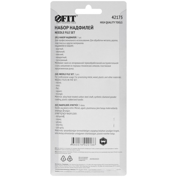 Материал: жало из легированной стали с алмазным напылением, пластиковая прорезиненная ручка. Упаковка: блистер.