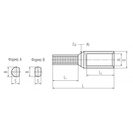 Оконцевание опрессовкой алюминиевых кабелей и проводов сечением 70 мм2 для подключения к выводам автоматических выключателей и прочим устройствам с ограниченной шириной контактной клеммы