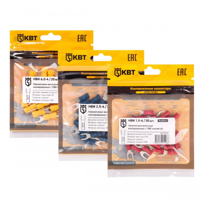 Наконечник кабельный вилочный изолированный НВИ 2.5–4 (30 шт) (КВТ) (91008)