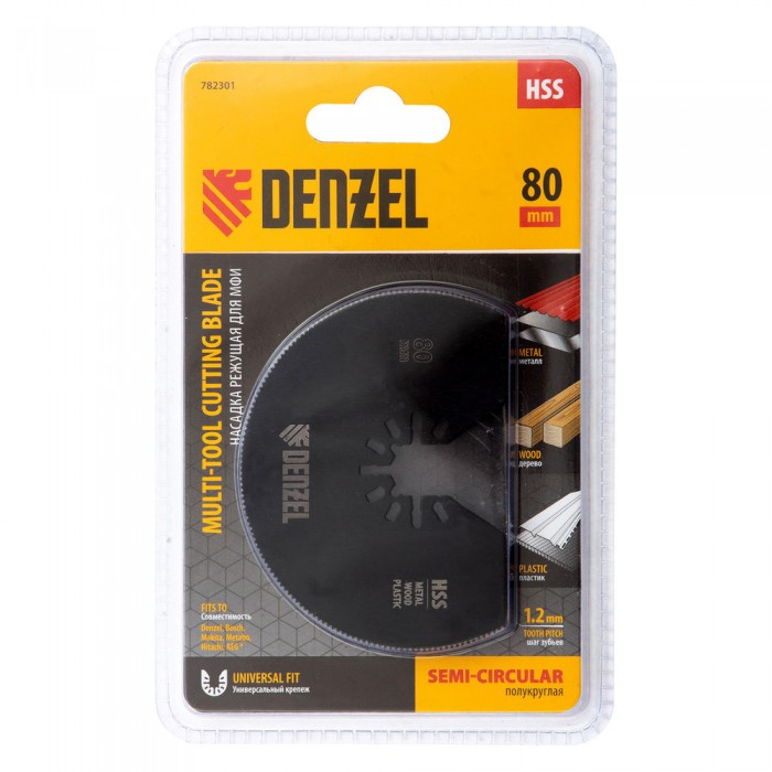 Насадка для МФИ отрезная полукруг, HSS, по металлу и дереву, 80 мм х 1,2 мм, мелкий зуб Denzel (782301)