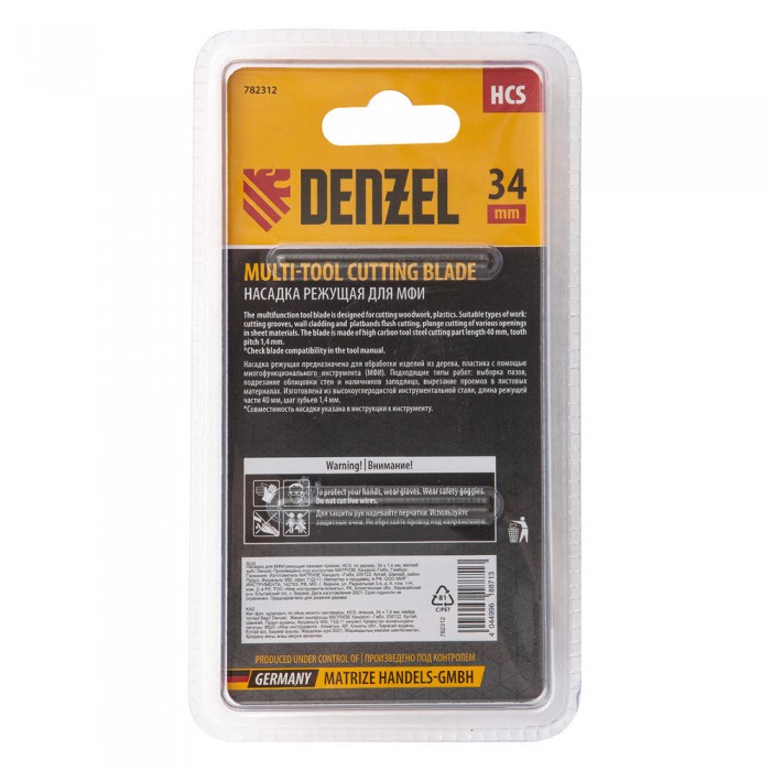 Насадка для МФИ режущая пазовая прямая, HCS, по дереву, 34 х 1.4 мм, мелкий зуб Denzel (782312)