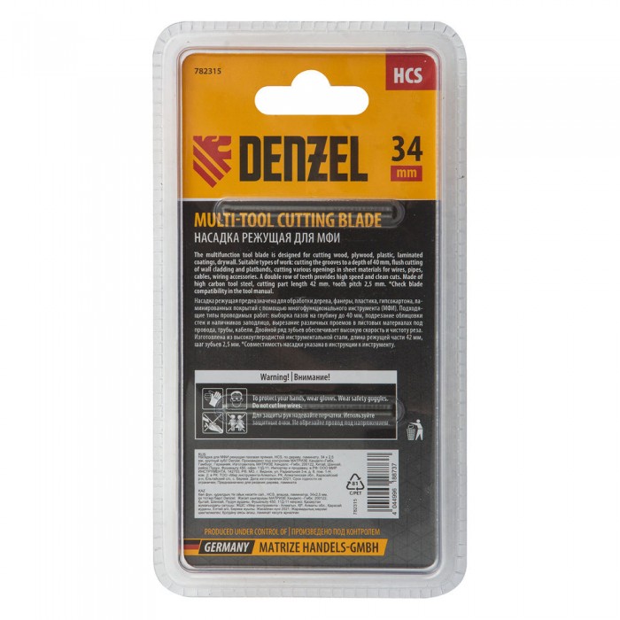 Насадка для МФИ режущая пазовая прямая, HCS, по дереву, ламинату 34 х 2.5 мм, крупный зуб Denzel (782315)