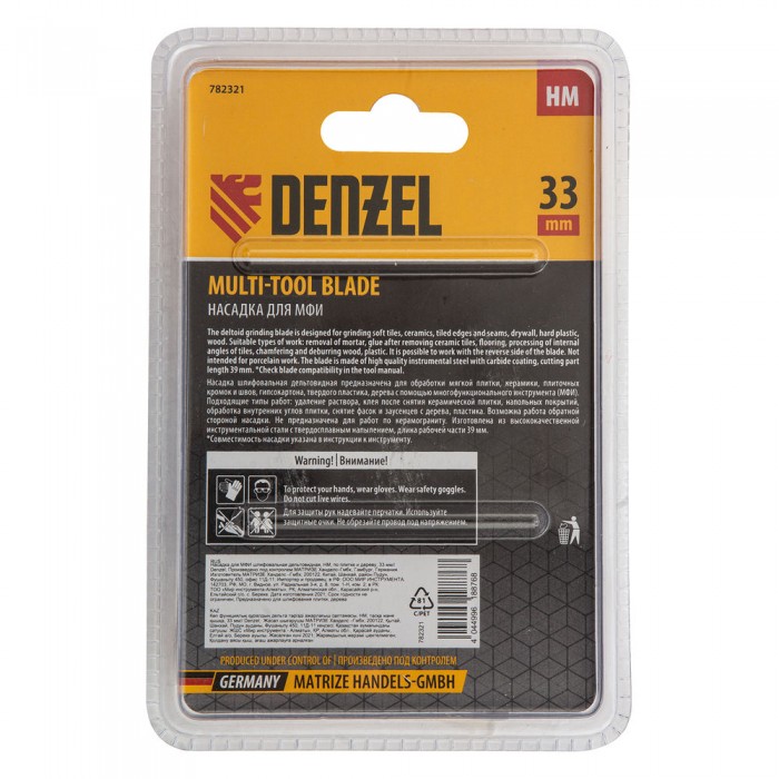 Насадка для МФИ шлифовальная двусторонняя дельта, узкая, HM, по плитке и дереву, 35 мм Denzel (782321)