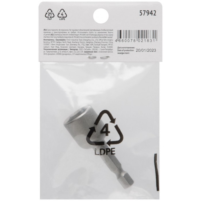 Профи. С шестигранной головкой и магнитом. Для работы с шурупами и болтами с шестигранной головкой. Упаковка: п/э пакет с картонным подвесом.