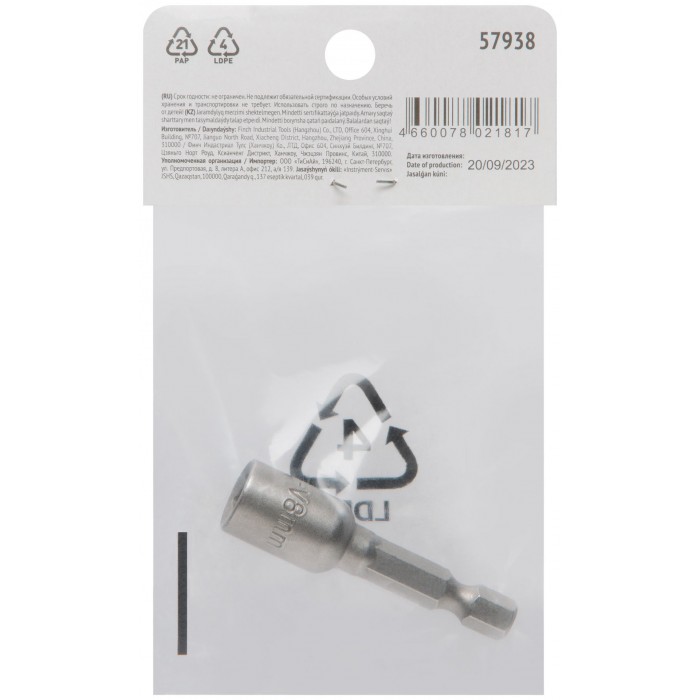 Профи. С шестигранной головкой и магнитом. Для работы с шурупами и болтами с шестигранной головкой. Упаковка: п/э пакет с картонным подвесом.