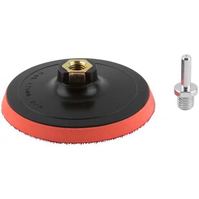 Насадка c липучкой предназначена для УШМ и дрелей. Применяется для проведения шлифовальных работ совместно с абразивными кругами на ворсовой основе. Преимущество насадки в наличии мягкой полиуретановой прокладки, которая позволяет качественно обрабатывать сложные неровные поверхности. В комплекте поставляется переходник с резьбы М14 на цилиндрический хвостовик.