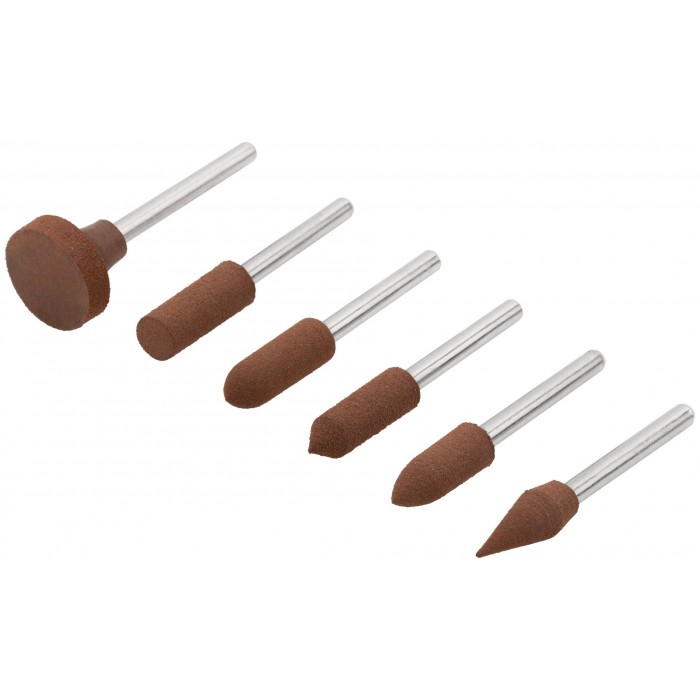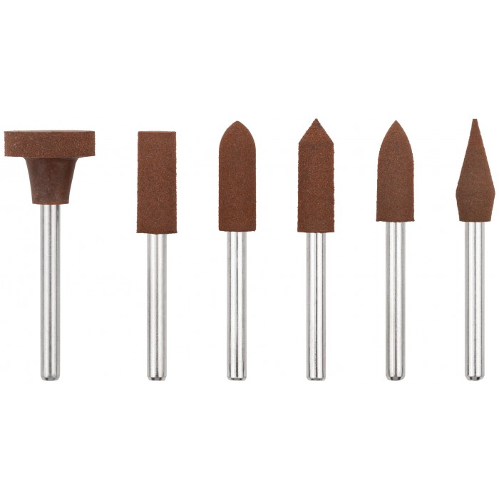Для гравировальной машины. В наборе 6 шт. Предназначены для шлифовки и полировки изделий из стали и цветных металлов. Зернистость: P150. D хвостовика=3,1 мм. Материал: резина, хвостовик из инструментальной стали, корунд. Упаковка: блистер.