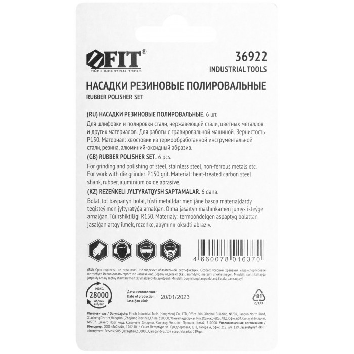 Насадки резиновые полировальные средней зернистости, набор 6 шт. (36922)