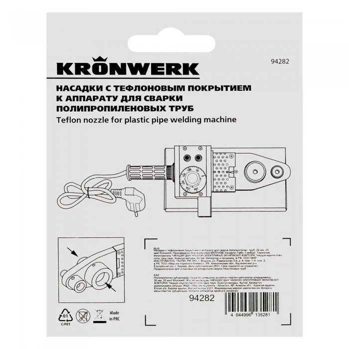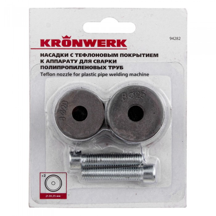 Насадки с тефлоновым покрытием к аппарату для сварки полипропиленовых труб, D: 20 мм, 25 мм Kronwerk (94282)