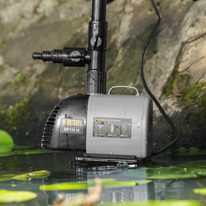 Насос фонтанный FNP110-34, 112 Вт, подъем 3,4 м, 3400 л/ч, колокольчик/каскад/гейзер Denzel (99032)