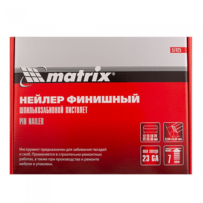 Нейлер финишный, шпилькозабивной пистолет, пневматический, гвоздь 23GA D 0.64 мм длина 10-30 мм Matrix (57425)