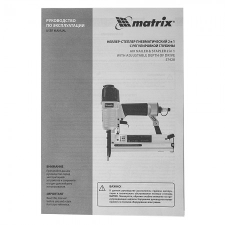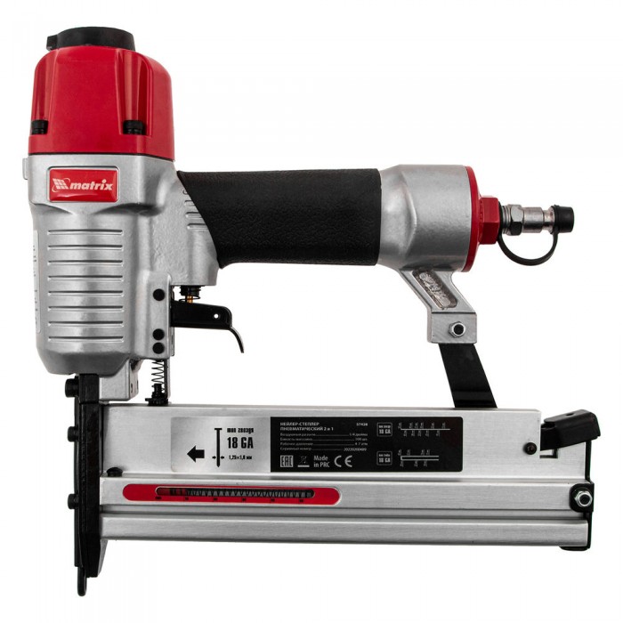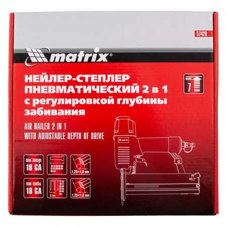 Нейлер-степлер пневматический 2 в 1, с регулировкой глубины забивания, гвозди 18GA, скобы 18GA Matrix (57428)