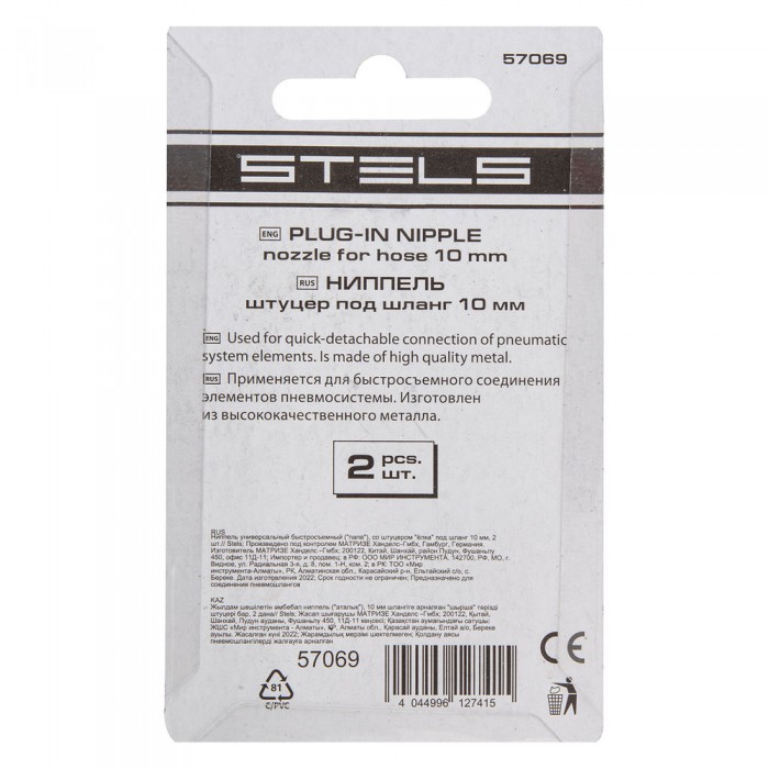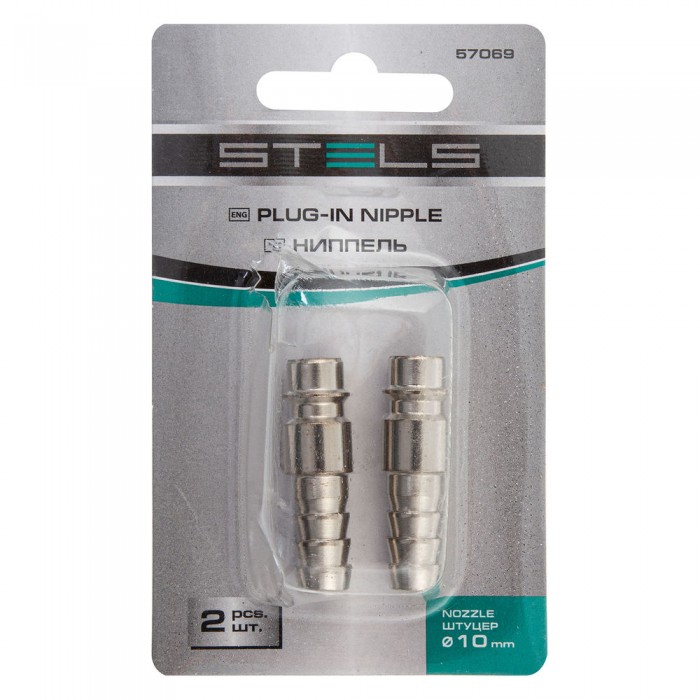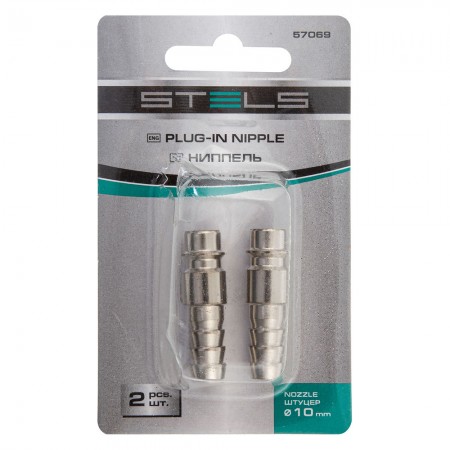 Ниппель универсальный быстросъемный ("папа") со штуцером "елка" под шланг 10 мм, 2 шт, Stels (57069)