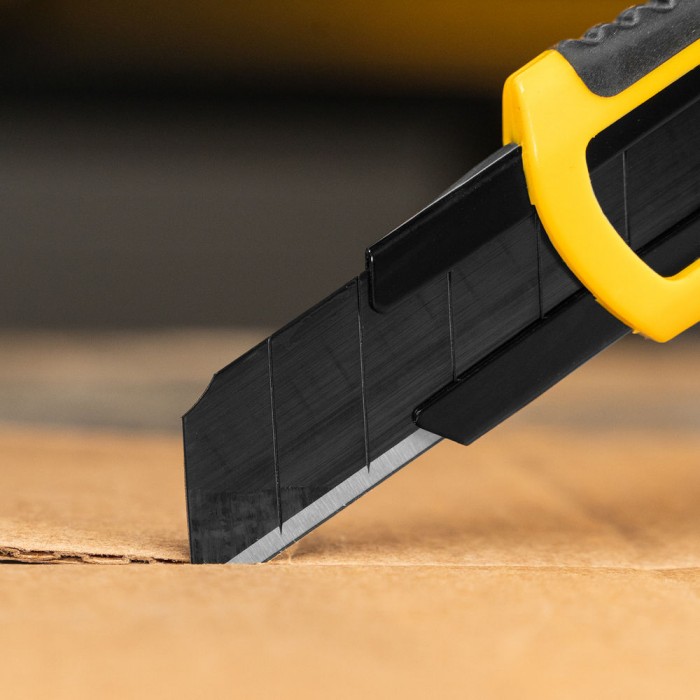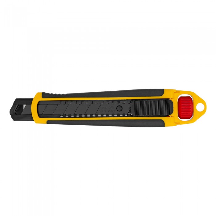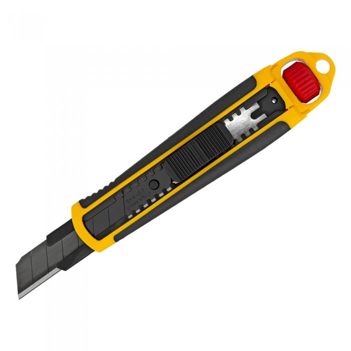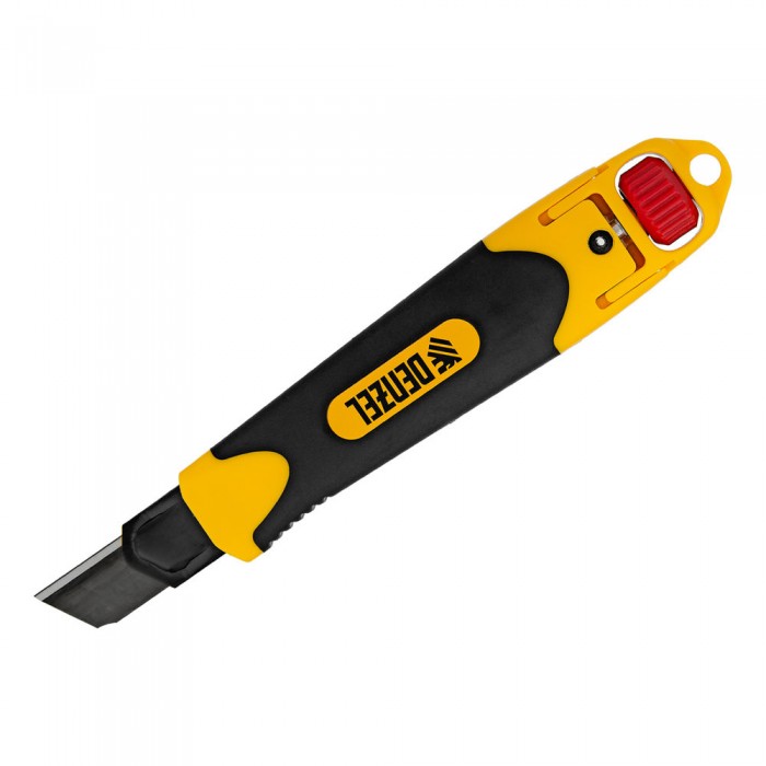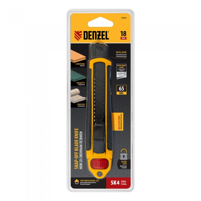 Нож, 18 мм, сменное лезвие, SK4, корпус из ABS + TPR, торцевой зажим Denzel (78903)
