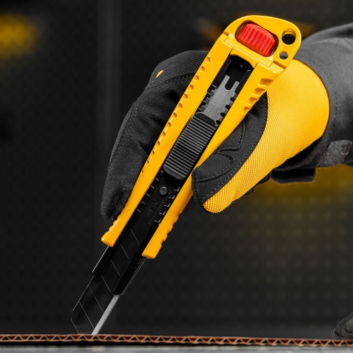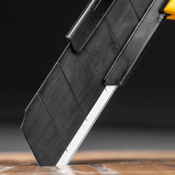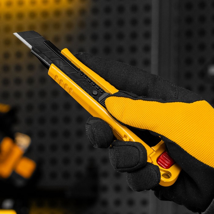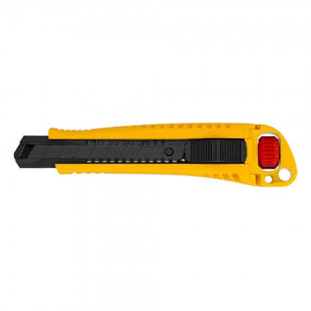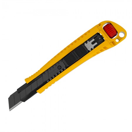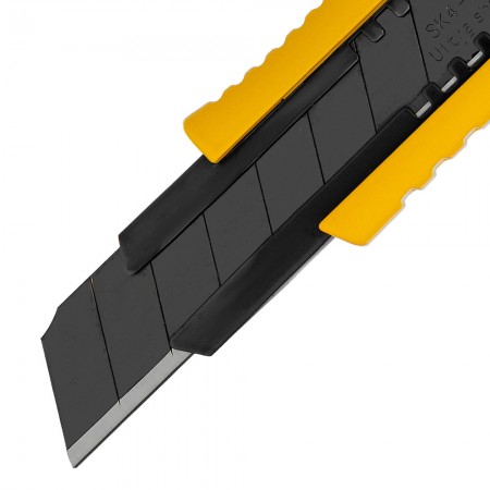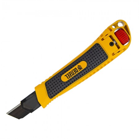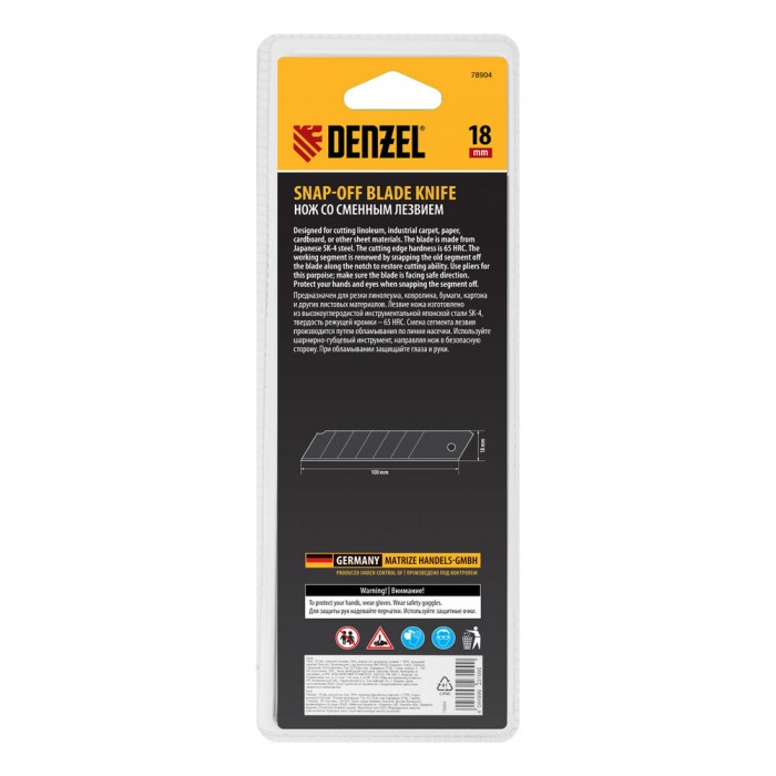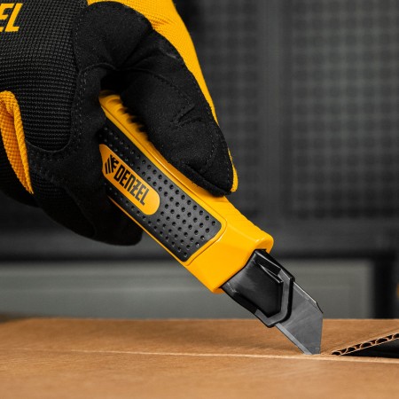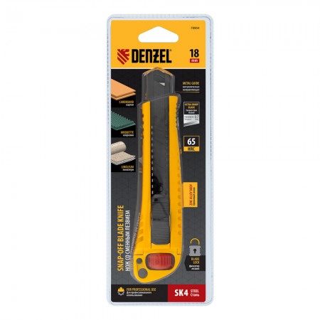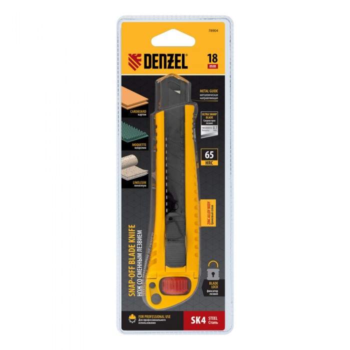 Нож, 18 мм, сменное лезвие, SK4, корпус из цинкового сплава + TPR, торцевой зажим Denzel (78904)