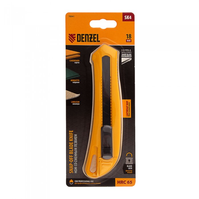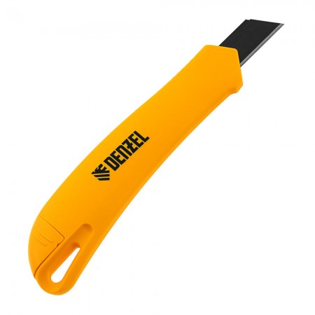 Нож, 18 мм, сменное лезвие, SK4, облегченный корпус, нажимной фиксатор Denzel (78941)