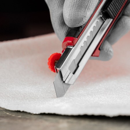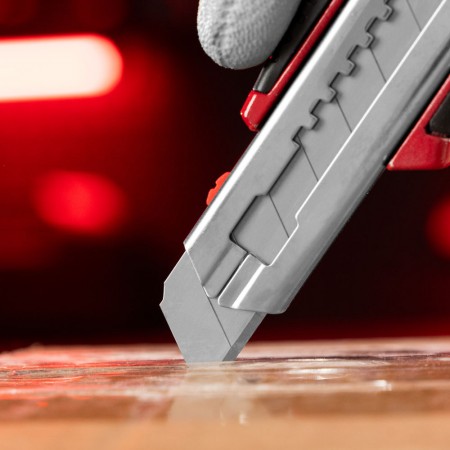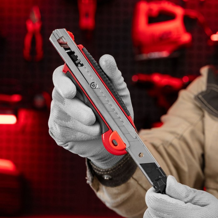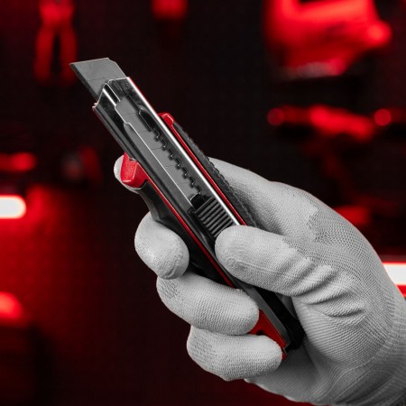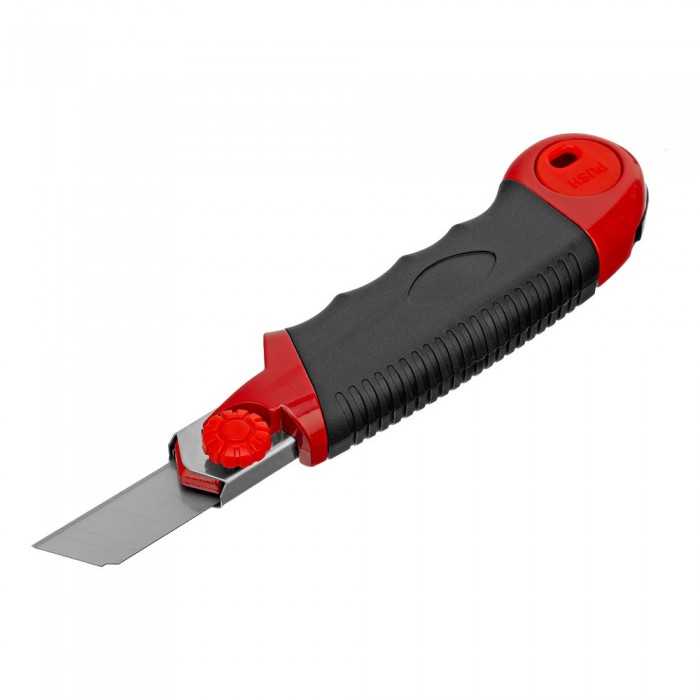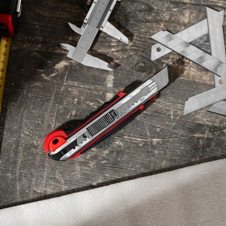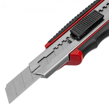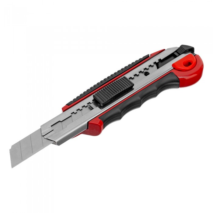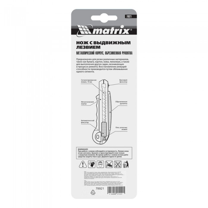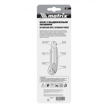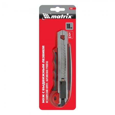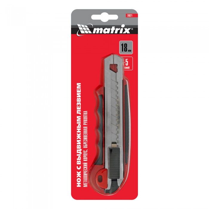 Нож, 18 мм, выдвижное лезвие, металлическая направляющая, обрезиненная ручка, 5 лезвий Matrix (78921)