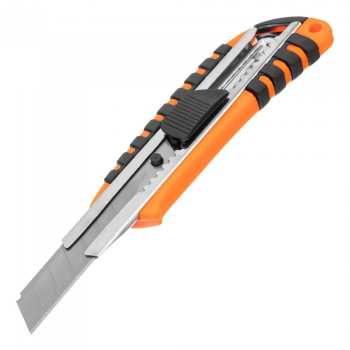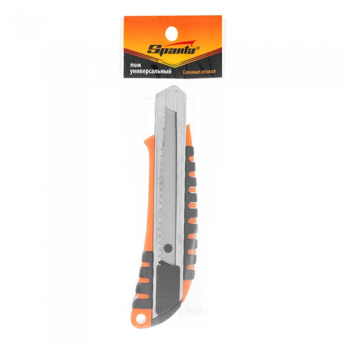 Нож, 18 мм, выдвижное лезвие, металлическая направляющая, пластиковый двухкомпонентный корпус Sparta (78939)