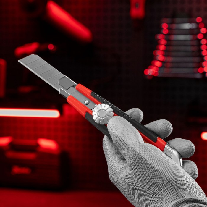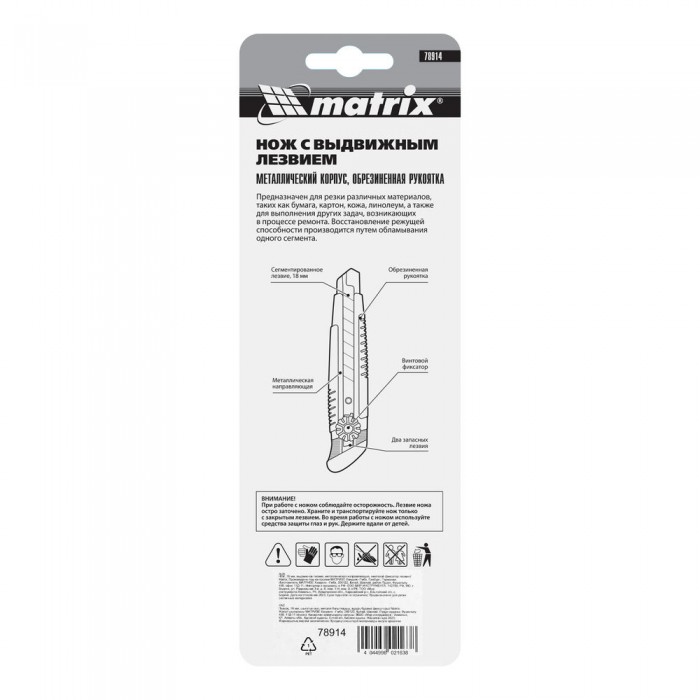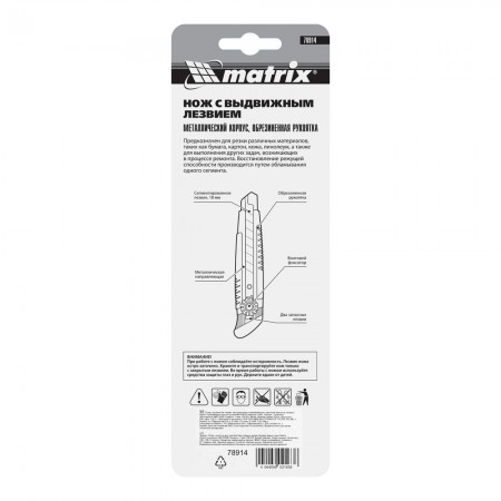 Нож, 18 мм, выдвижное лезвие, металлическая направляющая, винтовой фиксатор лезвия Matrix (78914)