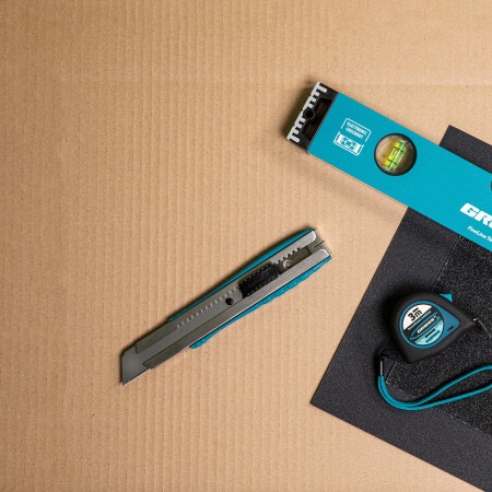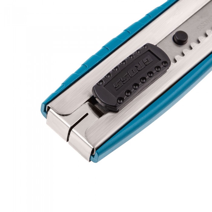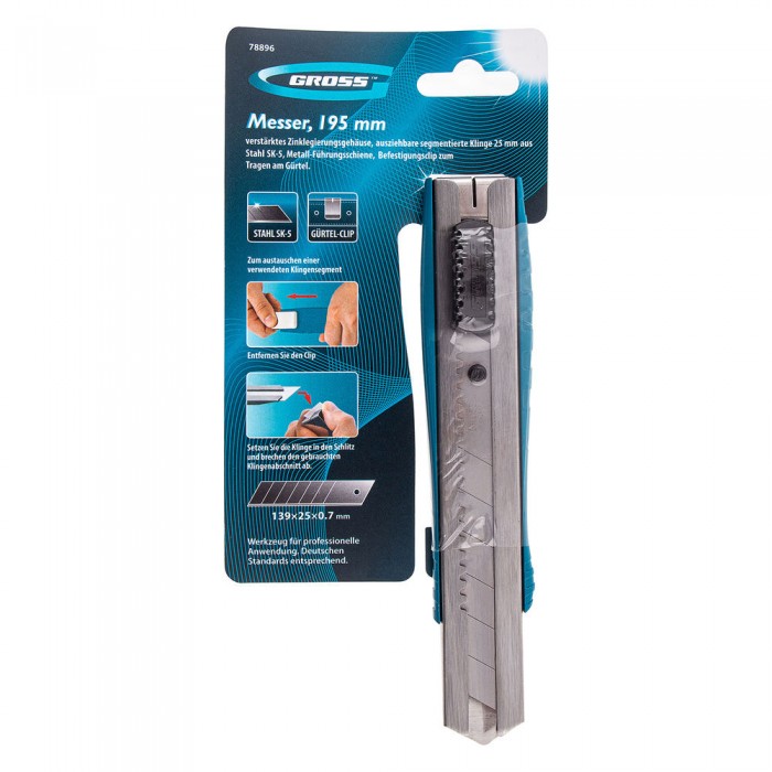 Нож, 195 мм, металлический корпус, выдвижное сегментное лезвие 25 мм (SK-5) металлическая направляющая, клипса для ремня Gross (78896)