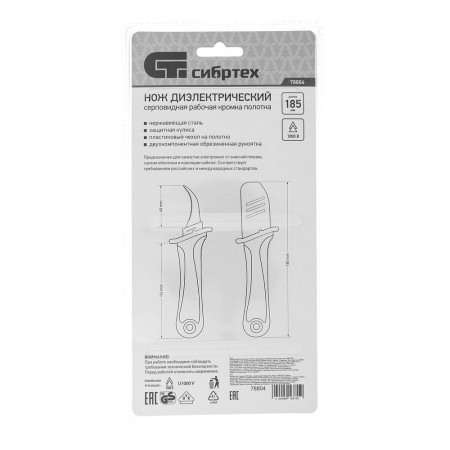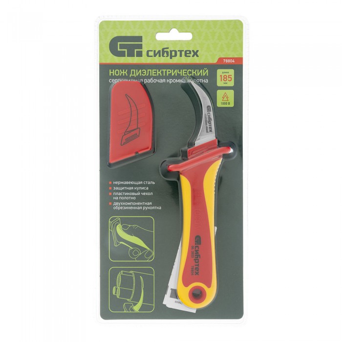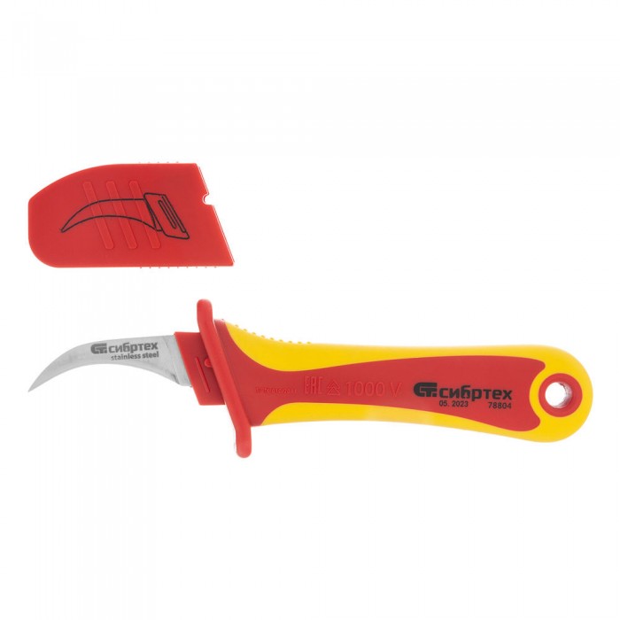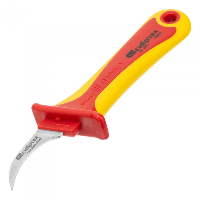 Нож диэлектрический до 1000 В, серповидная рабочая кромка полотна Сибртех (78804)