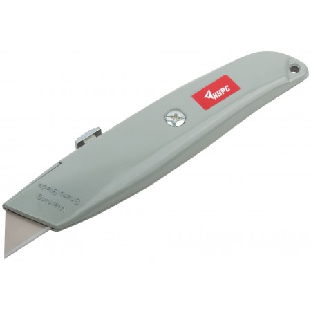 Для резки напольных покрытий. Материал: трапециевидное лезвие из инструментальной стали, металлический корпус. Упаковка: блистер.