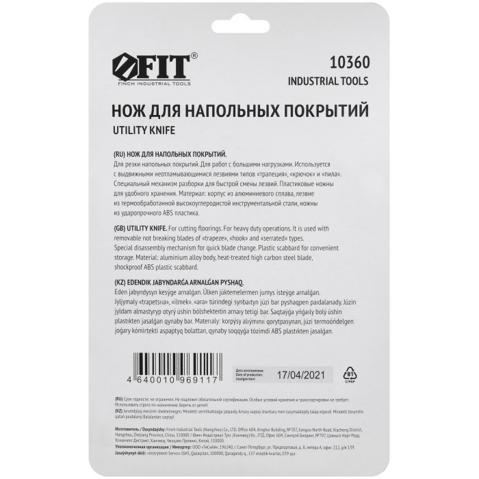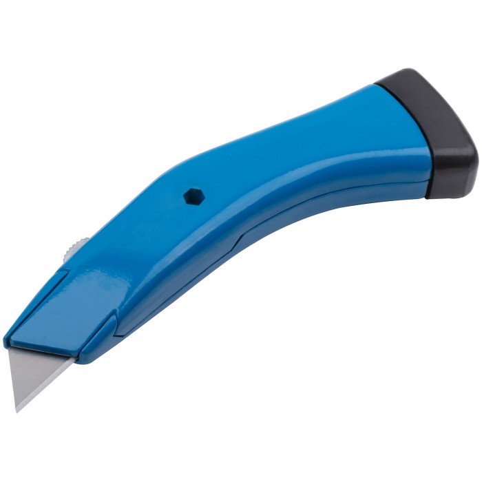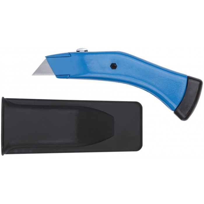 Профи. Для резки напольных покрытий. Может использоваться с выдвижными неотламывающимися лезвиями типа «трапеция», «крючок», «пила». В комплекте пластиковые ножны для удобного хранения. Материал: металлический корпус, трапециевидное лезвие из инструментальной стали. Упаковка: блистер.
