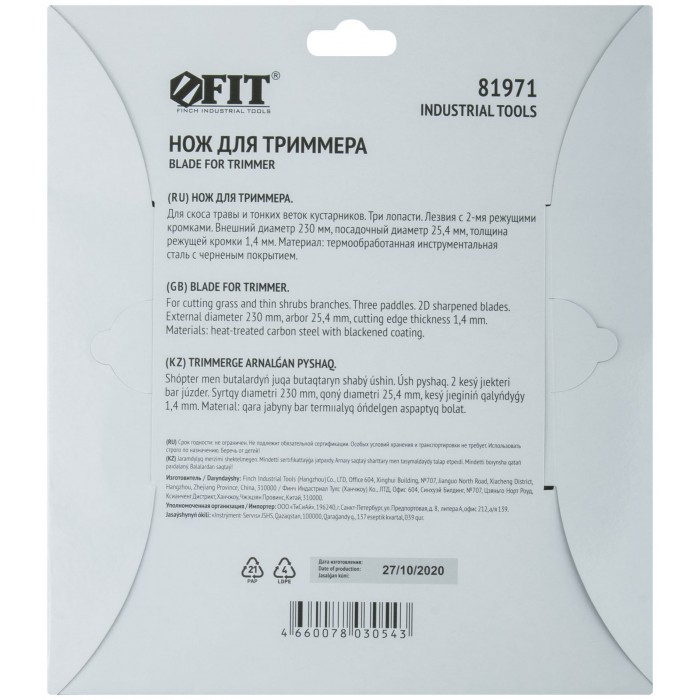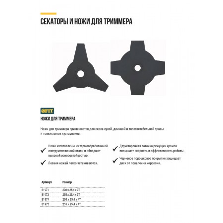 Нож для триммера, 3 лопасти, 2-х сторонние лезвия 230х25,4х3Т (81971)