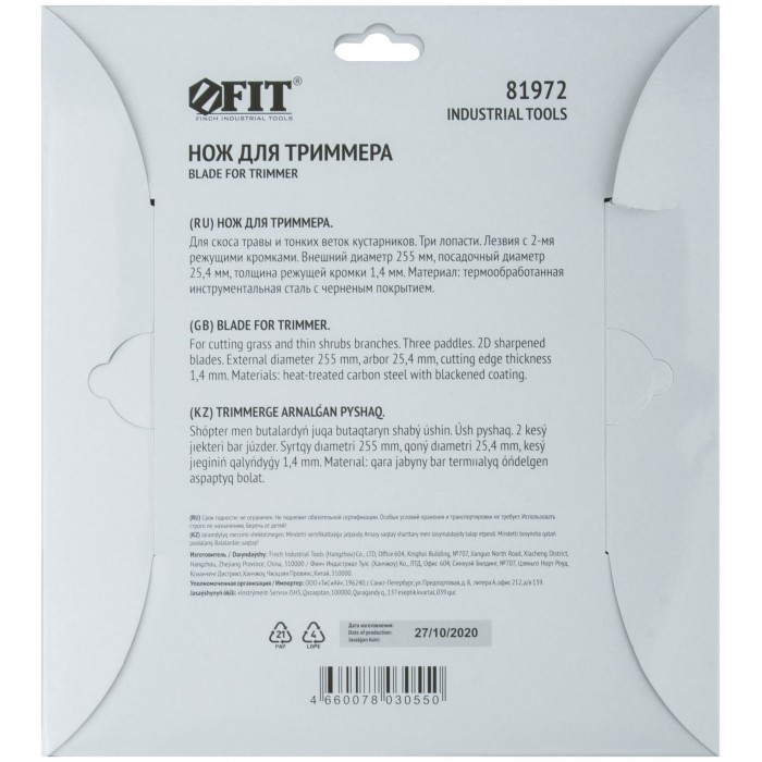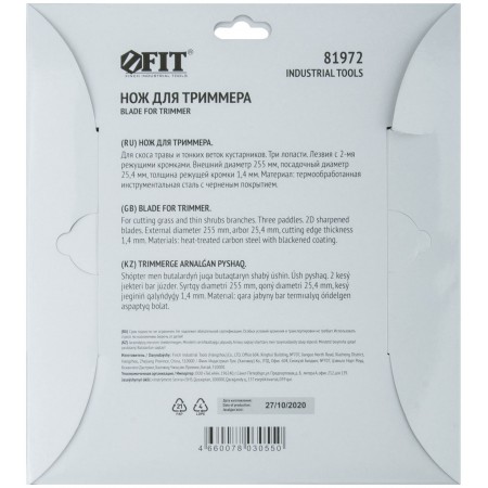 Нож для триммера, 3 лопасти, 2-х сторонние лезвия 255х25,4х3Т (81972)