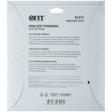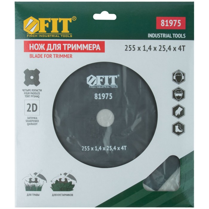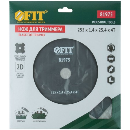 Нож для триммера, 4 лопасти, 2-х сторонние лезвия 255х25,4х4Т (81975)