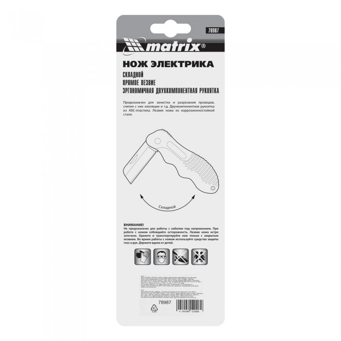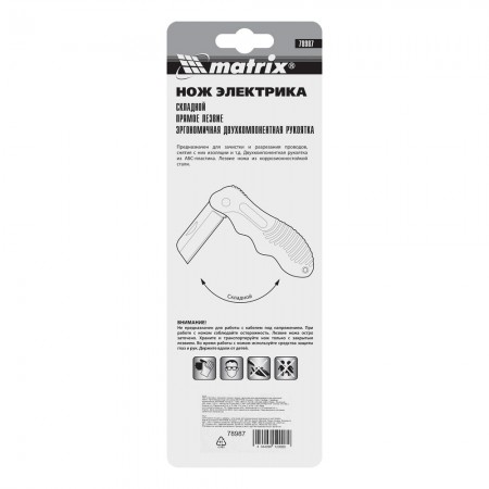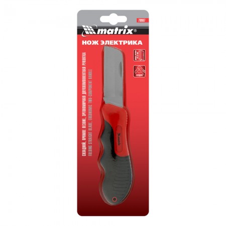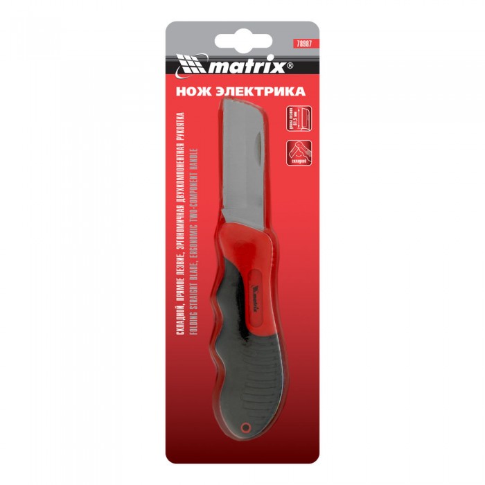 Нож электрика, складной, прямое лезвие, эргономичная двухкомпонентная рукоятка Matrix (78987)
