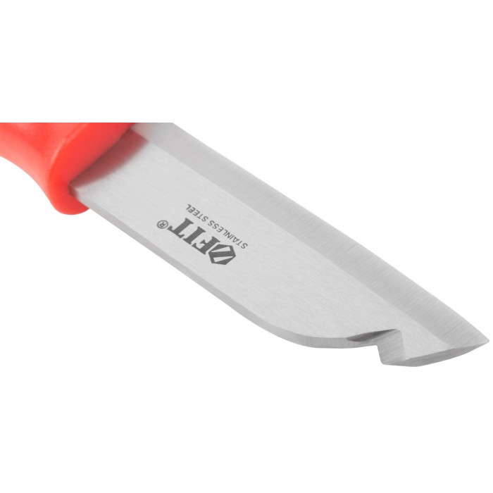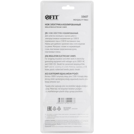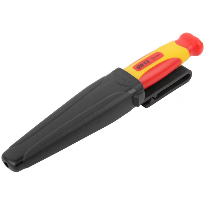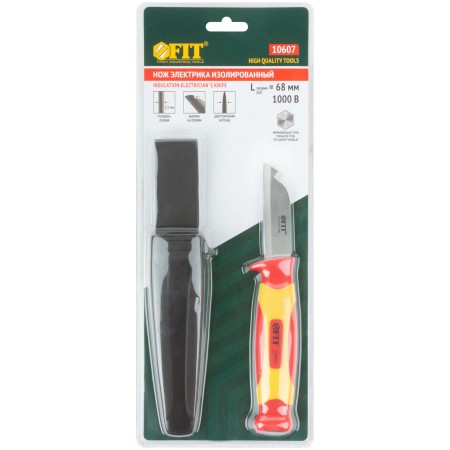 Для зачистки изоляции и прочих работ в электроустановках напряжением до 1000 В переменного тока и 1500 В постоянного тока. Ножны для удобного хранения ножа и его ношения на ремне. Материал: лезвие из нержавеющей стали, пластиковая прорезиненная ручка, пластиковые ножны. Упаковка: блистер.