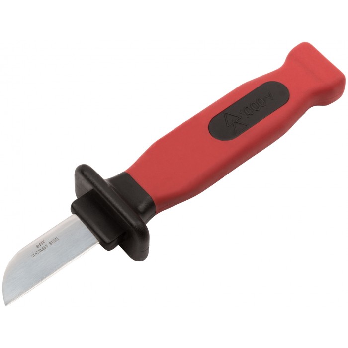 Для зачистки изоляции и прочих работ в электроустановках напряжением до 1000 В переменного тока и 1500 В постоянного тока. Материал: лезвие из нержавеющей стали, пластиковая прорезиненная ручка, пластиковые ножны.