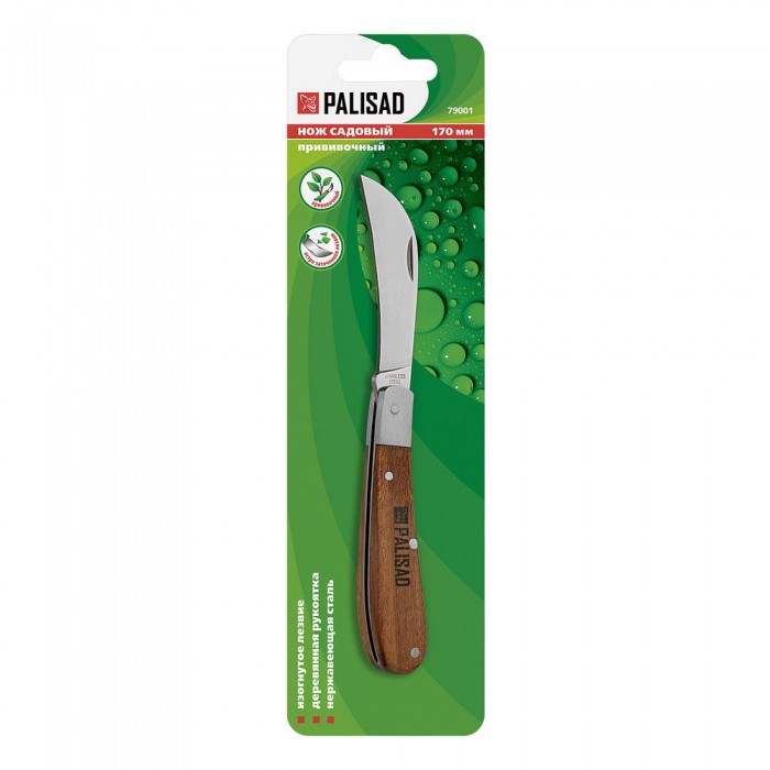 Нож садовый складной, изогнутое лезвие, 170 мм, деревянная рукоятка, Palisad (79001)
