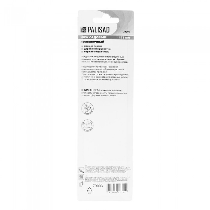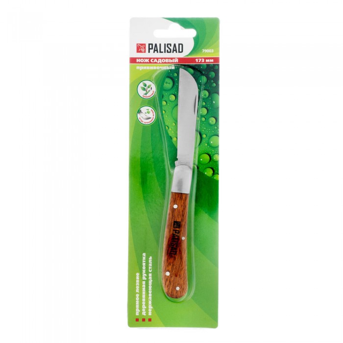 Нож садовый складной, прямое лезвие, 173 мм, деревянная рукоятка, Palisad (79003)