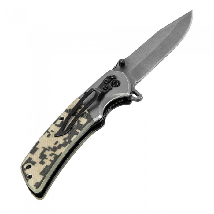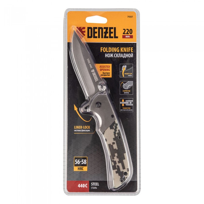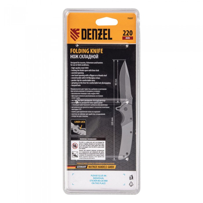 Нож складной, многоцелевой, системы Liner-Lock, с накладкой G10 на классической рукоятке Denzel (79207)