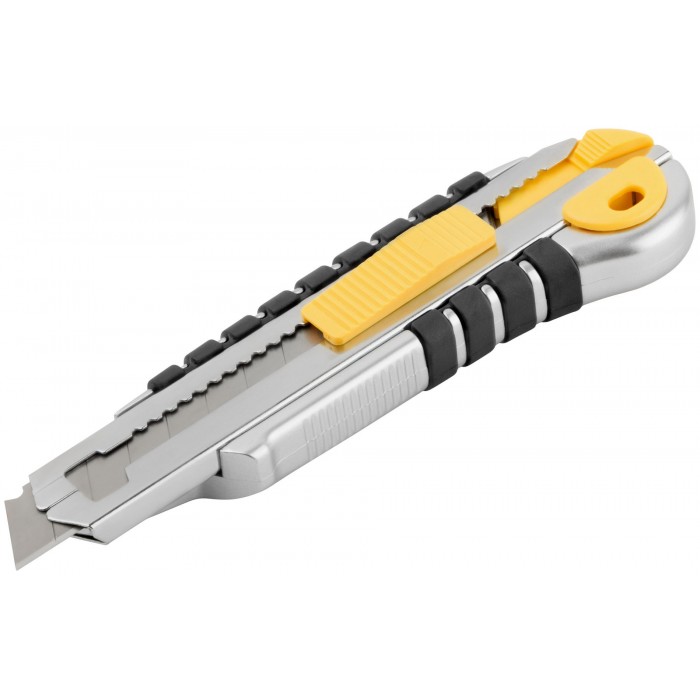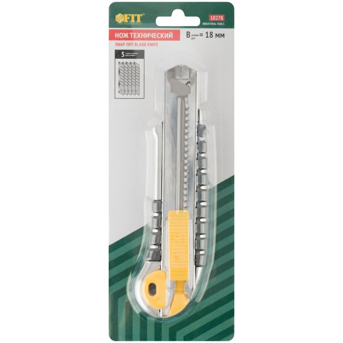Нож технический 18 мм усиленный прорезиненный, кассета 5 лезвий, Профи (10278)