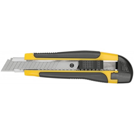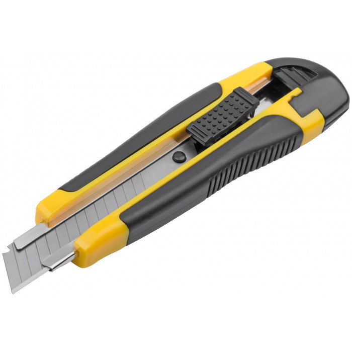 Нож технический 18 мм усиленный прорезиненный, лезвие 15 сегментов (10254)