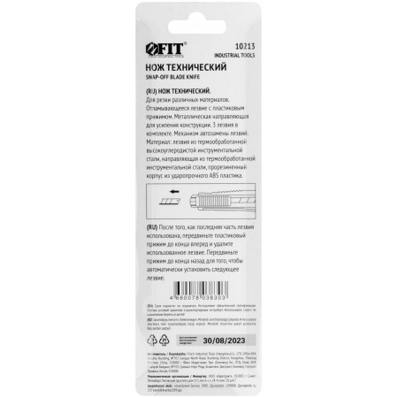 «Отламывающееся» лезвие с пластиковым прижимом. 3-лезвия в комплекте, механизм автозамены лезвий. Материал: прорезиненный корпус из ударопрочного ABS пластика, усиленный металлической направляющей, лезвия из высокоуглеродистой стали. Упаковка: блистер.