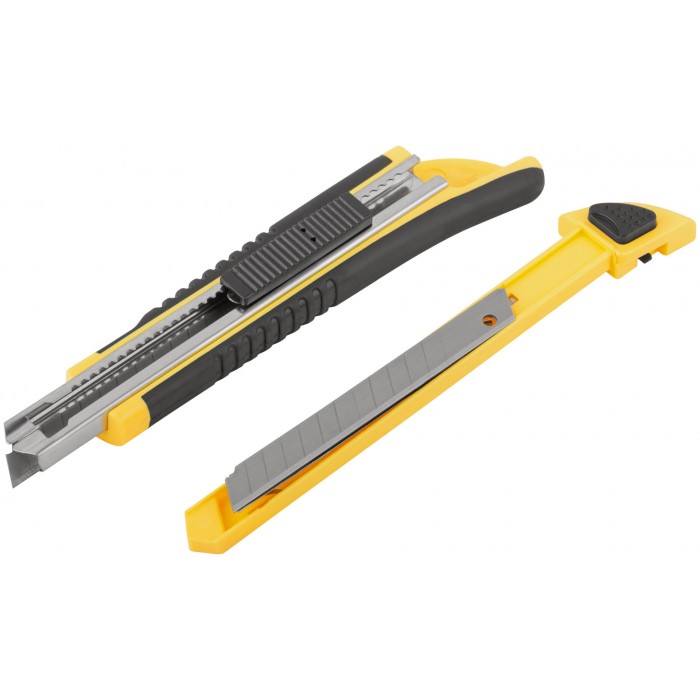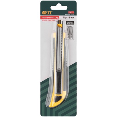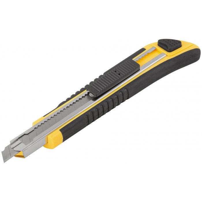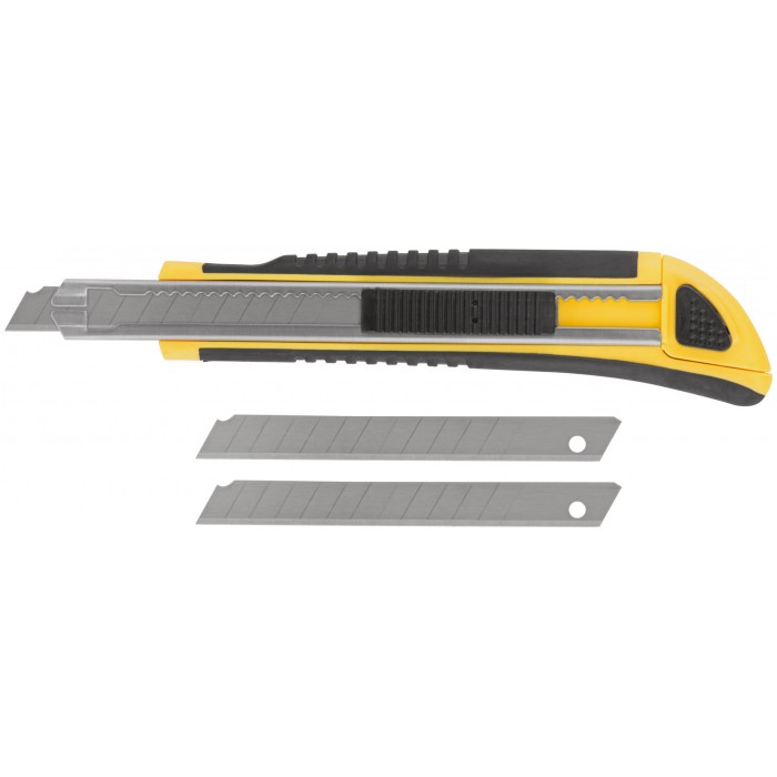 Нож технический 9 мм усиленный прорезиненный, кассета 3 лезвия (10213)