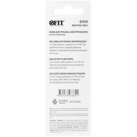2 шт. Двусторонние. Для обработки мягкой и твердой древесины. Материал: быстрорежущая (HSS) сталь. Упаковка: блистер.